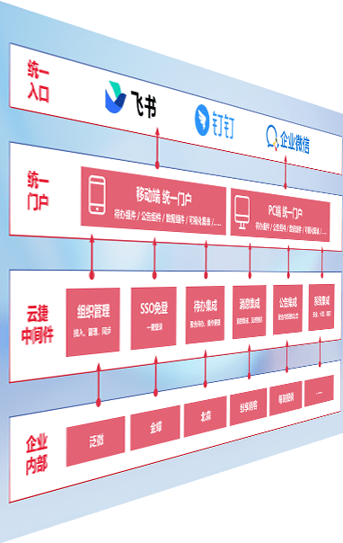 对协作平台提供支持服务,,支持企业应用与协作平台对接,,,包含组织同步、、消息集成、、、、待办集成等。。。。支持目前主流的协作平台:钉钉、、、企微和飞书。。。。